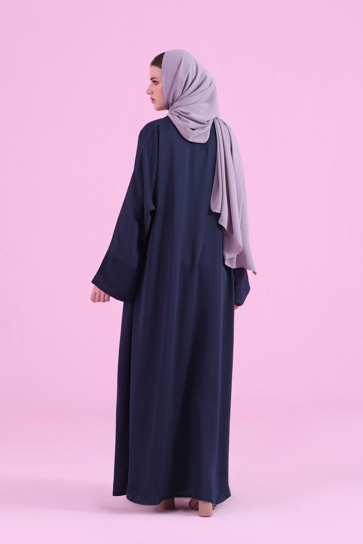 The abaya features an attached kimono and inner, creating a seamless and structured look complemented by a classic round neckline. Made from lightweight, smooth Nida fabric, it is fully opaque, highly breathable and ideal for daily wear as well as Umrah and Hajj, keeping you comfortable throughout the day.