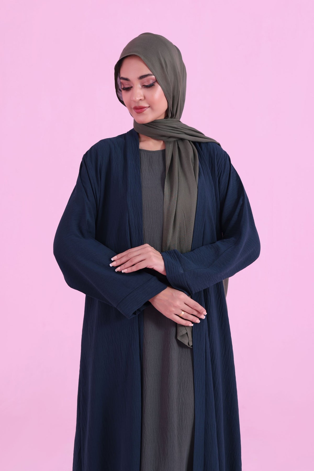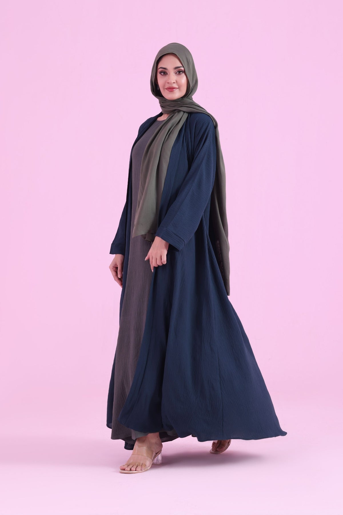 Experience effortless elegance with our Dual Tone Textured Kimono Abaya, thoughtfully crafted from premium Turkish fabric renowned for its refined finish, breathability and all-day comfort. Designed in a dual-tone style, the inner features a contrasting shade while the upper kimono layer complements it beautifully, adding depth and visual sophistication to your modest wardrobe.