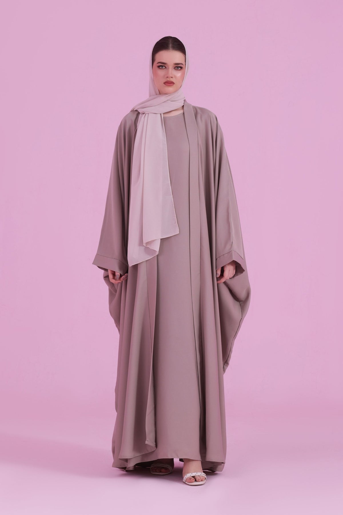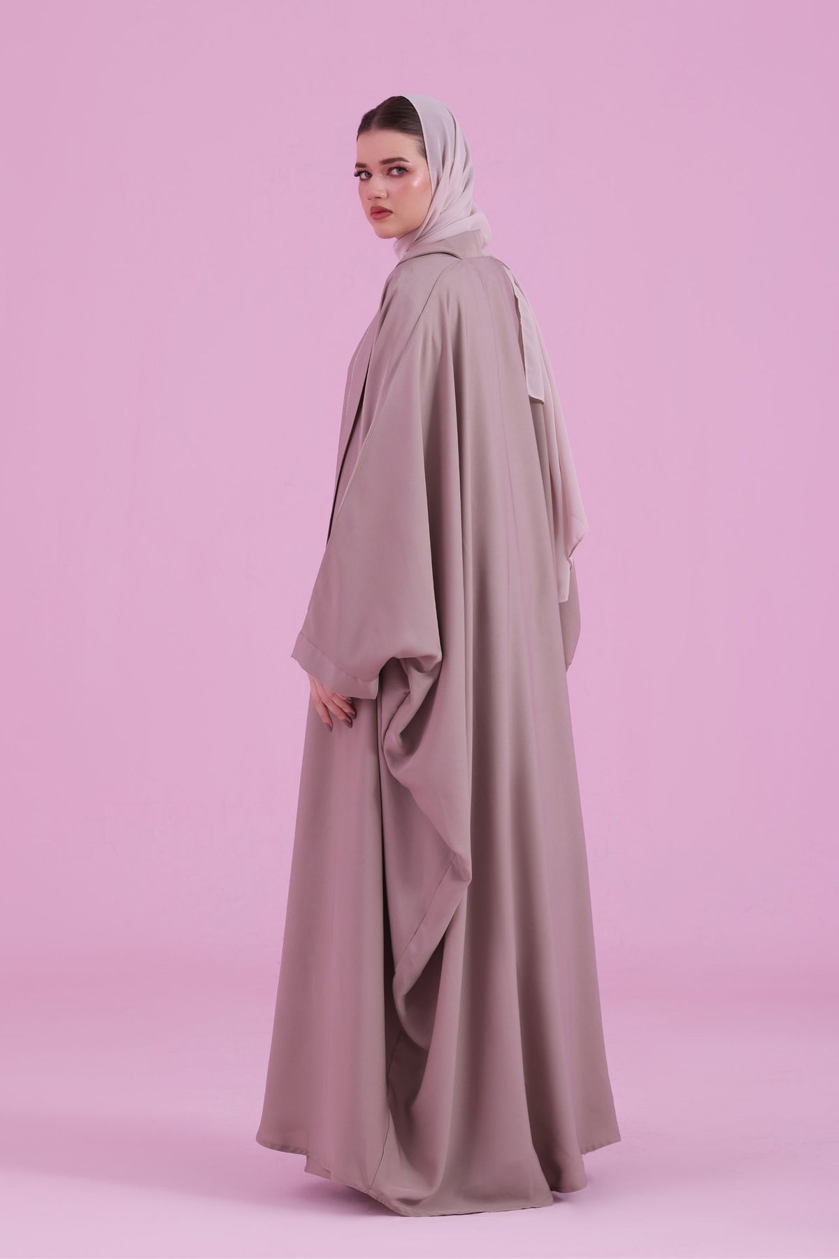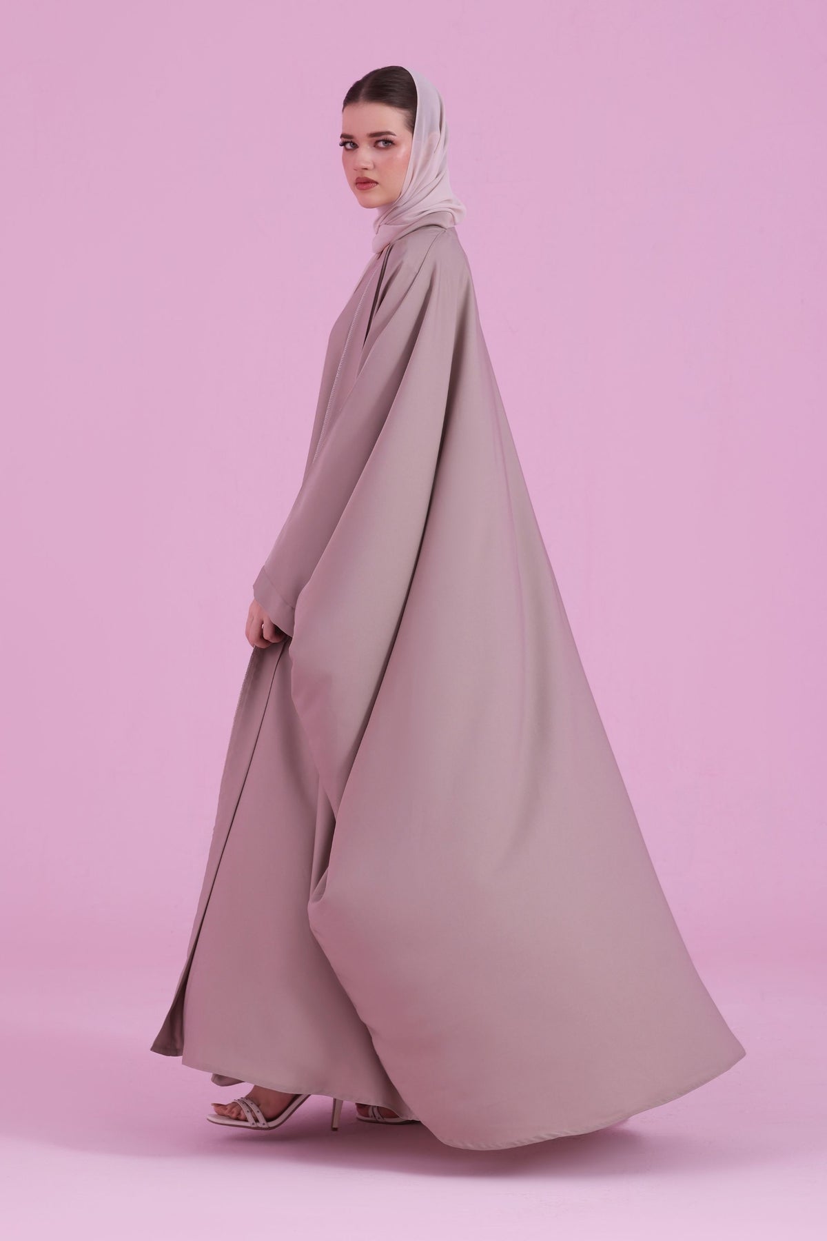 Flowy Farasha Cut Abaya - Dusky Ivory