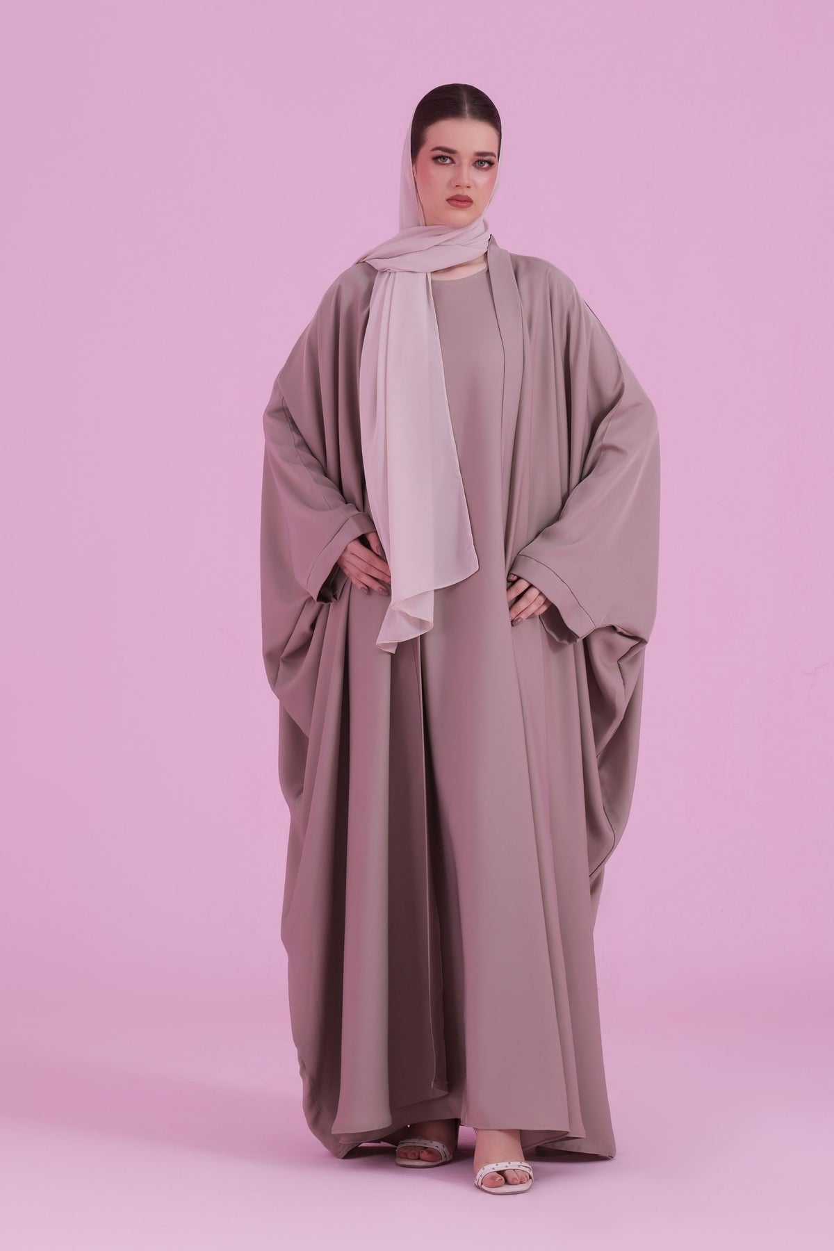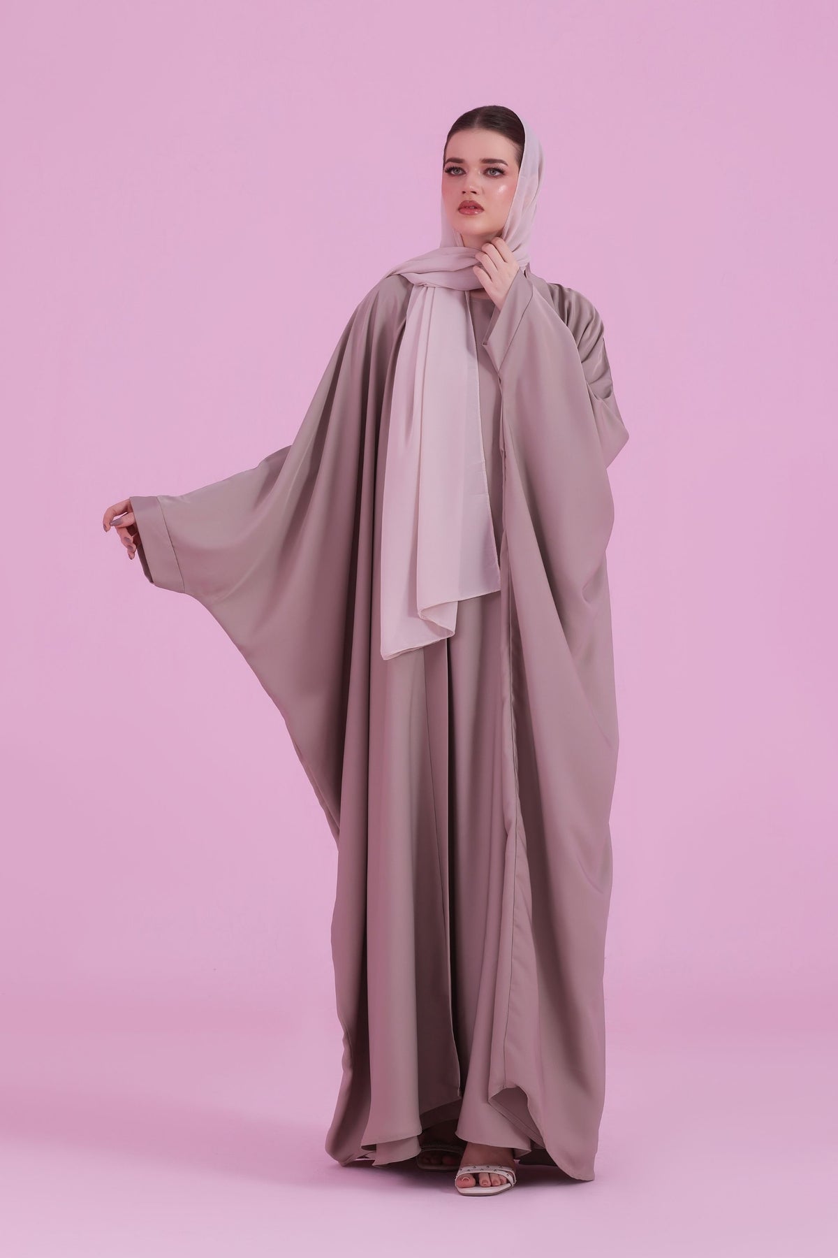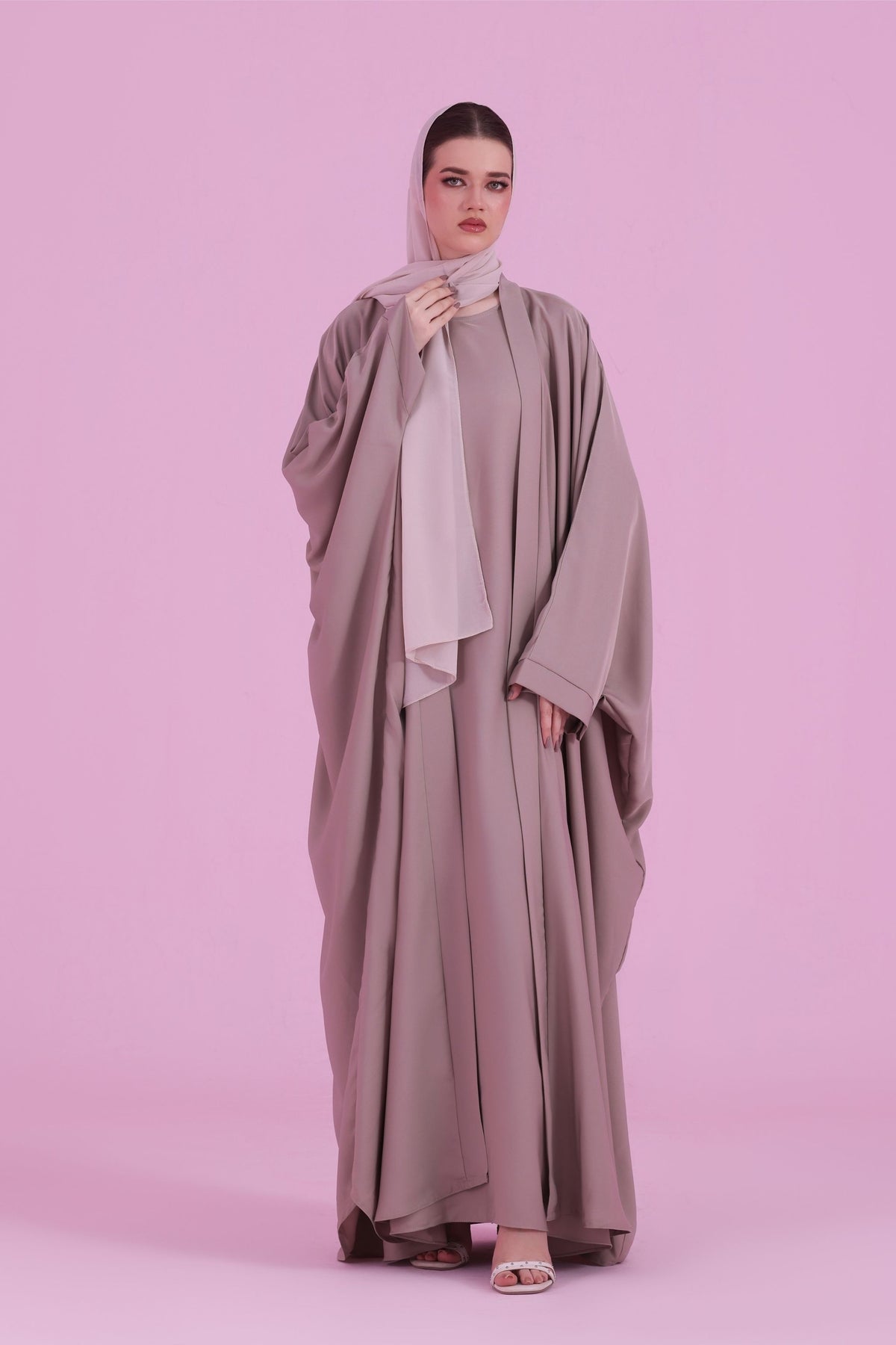 Flowy Farasha Cut Abaya - Dusky Ivory